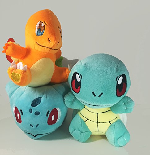 -. Feature : Get the pokemon go starter kit now! / Set includes three plush monsters: bulbasaur 8", charmander 6. 5", squirtle 7". / Durable toys for active kids. / Great value for this larger size set. / Ready to take on all your adventures.