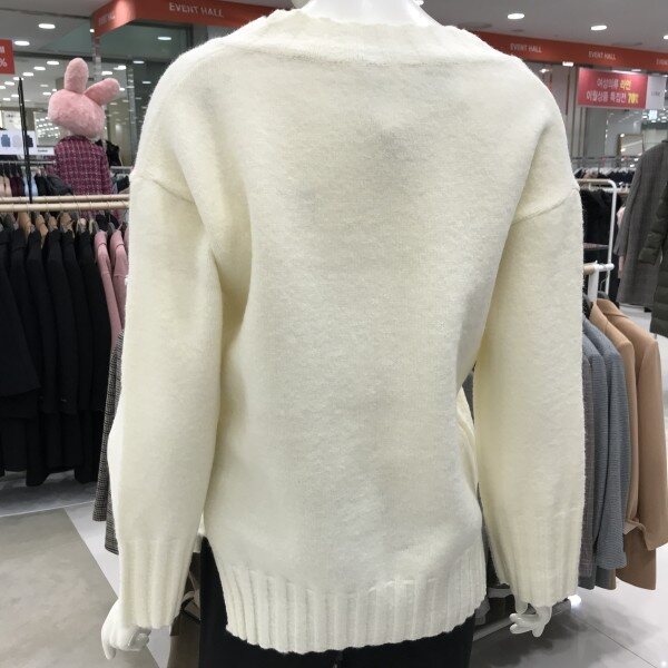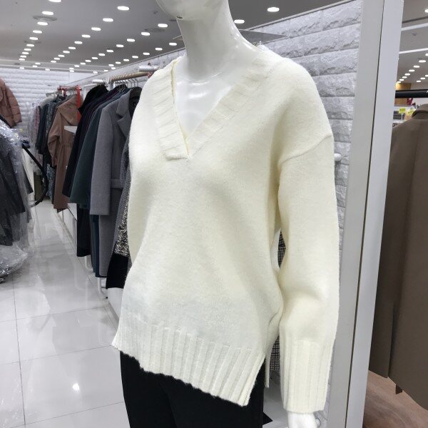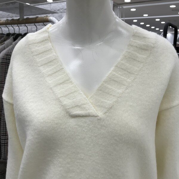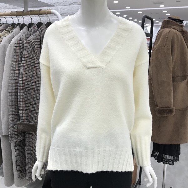 깊은 브이넥에 포근한 기본 니트입니다원싸이즈로 신축성 좋아요