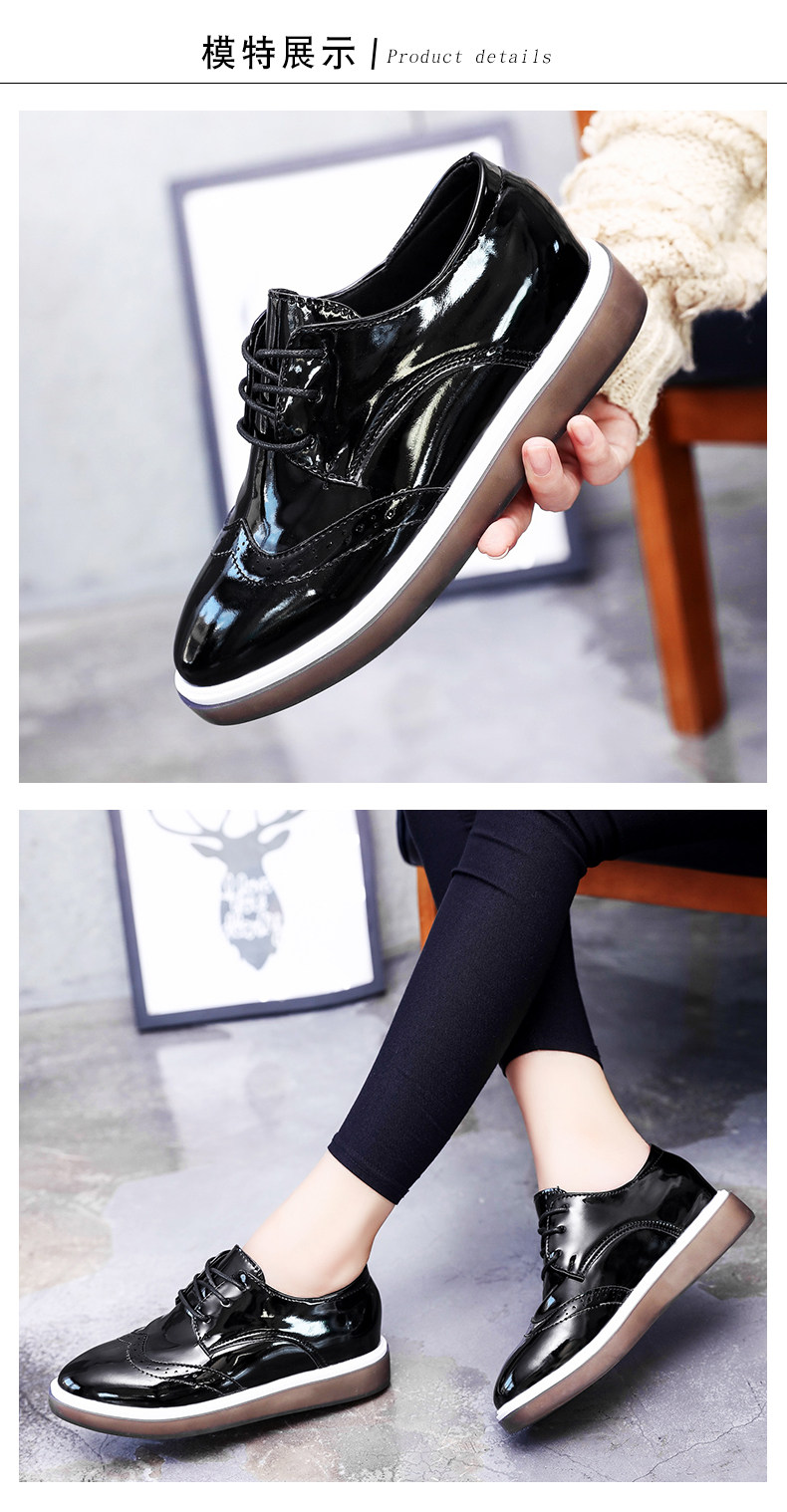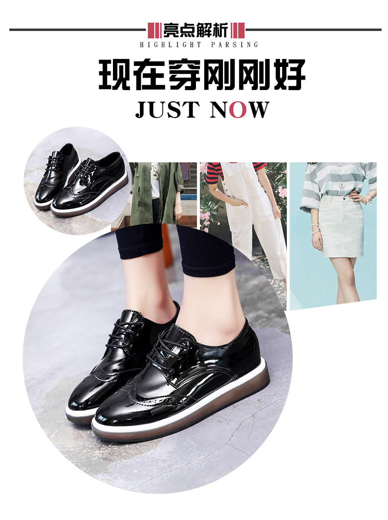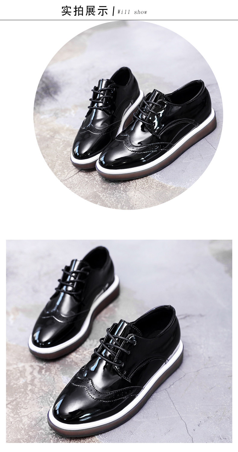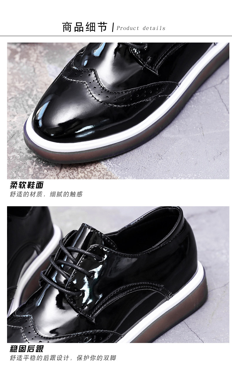 鞋子女新款单鞋女英伦风小皮鞋布洛克鞋厚底鞋内增高休闲女鞋