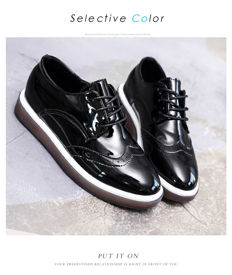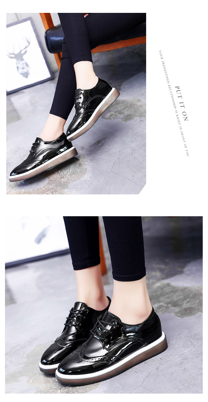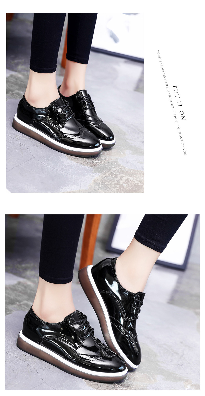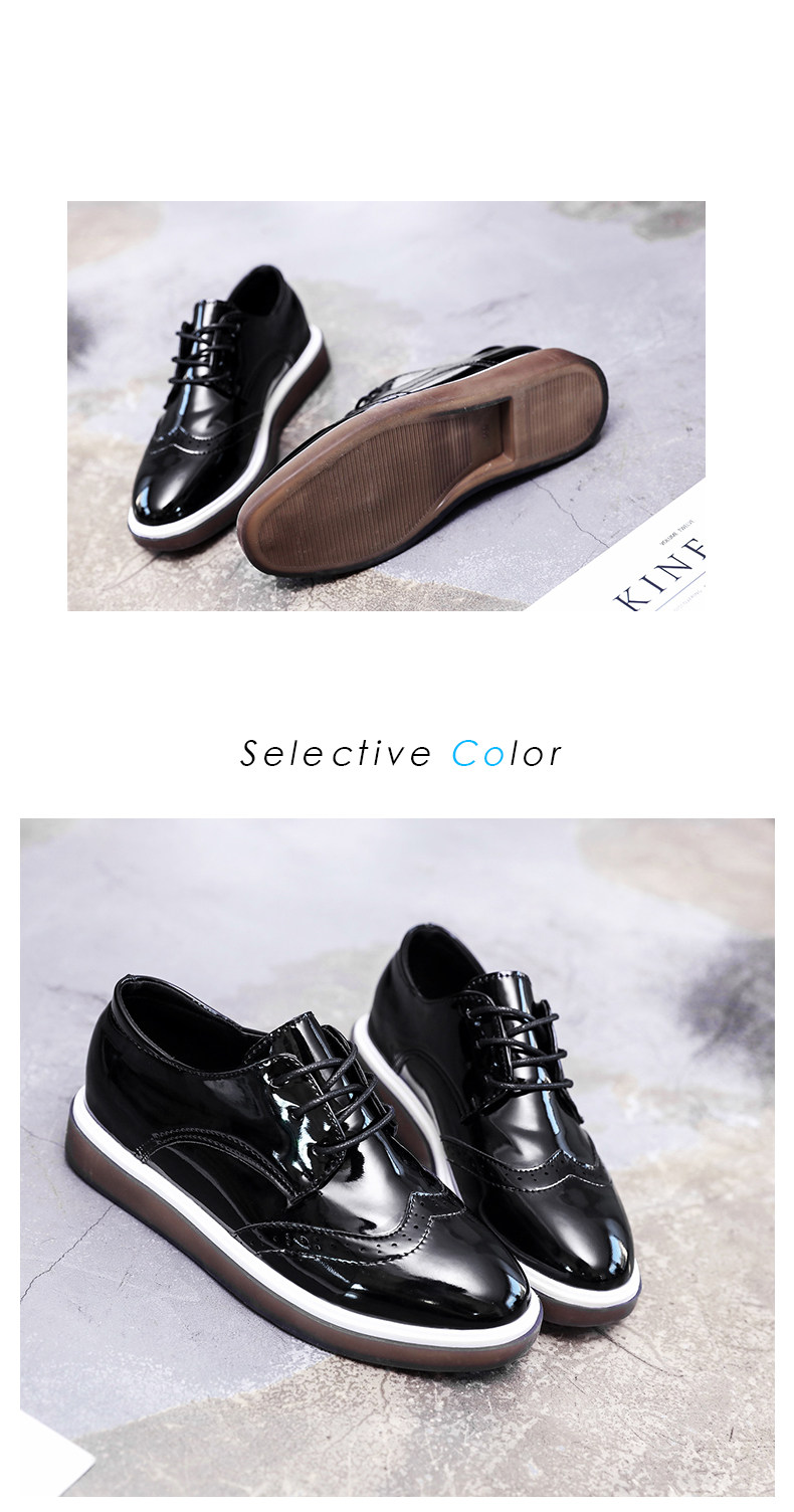 鞋子女新款单鞋女英伦风小皮鞋布洛克鞋厚底鞋内增高休闲女鞋
