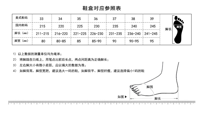 This shoes is standard size.If your foot are chubby type,you may choose one size bigger.Please measure and choose carefully before place the order,NOT exchange are allowed !