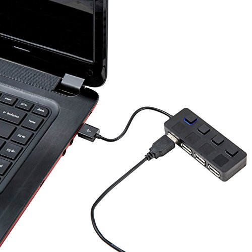 E-HORDE Mini Hub 4-Port USB with Individual Power Switches (Black)