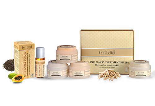Sattvik Organics Spotless Skin Kit • Very Effective for Stubborn Scars & Marks • Evens Skin Tone & Treats Discoloration • Leaves Skin Smoother & Spotless • Minimizes Discoloration of All KindsFeature