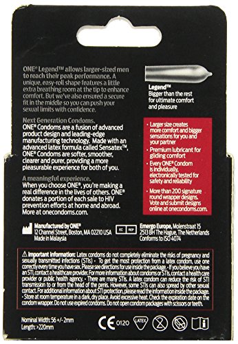 The Big One. ONE Legend allows larger-sized men to reach their peak performance. A unique, easy-roll shape features a little extra breathing room at the base and tip to enhance comfort. We've also ensured a secure fit in the middle, so you can push your sexual limits with confidence.Feature