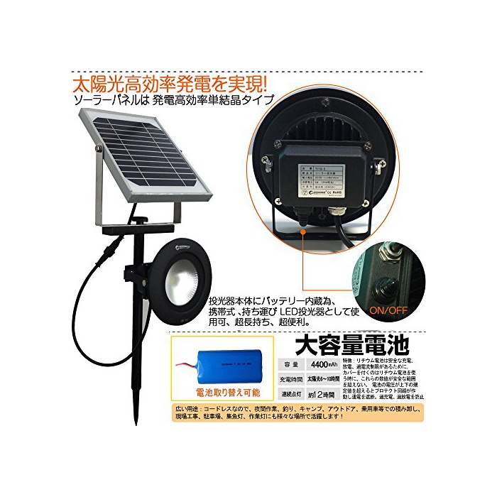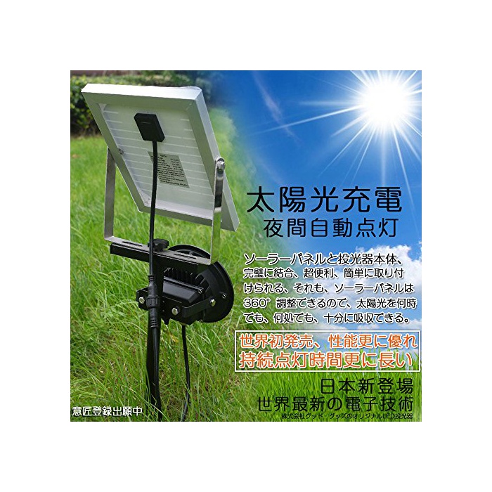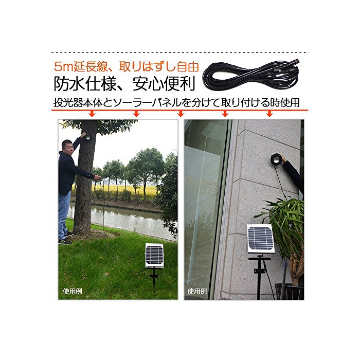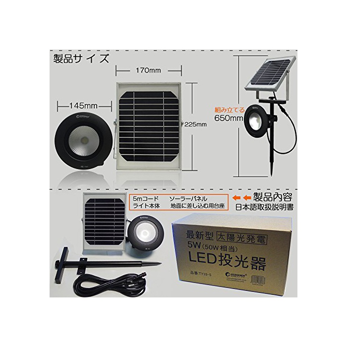 부속품:5m접속 코드,스탠드,일본어 취급 설명서 주의:어두워지면 자동 점등합니다.솔라 패널이 빛을 감지하면,점등 할 수 없습니다.