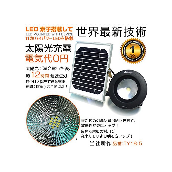 GOODGOODS LED 솔라 라이트 옥외 방수 5W 50W 상당히 전구색 가든 라이트 야간 자동 점등 【1년 보증】 TY18-5전구색