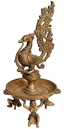 Peacock Lamp Supported by Ladies - Brass Statue