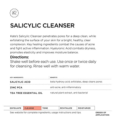 -. Feature : DEEP CLEANS PORES: Naturally deep cleans pores, removes excess oil and kills acne causing bacteria without the use of harsh ingredients that strip the skin of its natural oils and protective barrier. Proper cleansing is the first and most important step toward beautiful, clear skin. CLEARS ACNE PRONE SKIN and helps to prevent future breakouts. Tea Tree Essential Oil naturally kills many types of bacteria. Alpha Lipoic Acid and DMAE improves skin texture. / GENTLE BUT EFFECTIVE: By design, this non-foaming cleanser deep cleans skin without the use of harsh chemicals. No sodium lauryl sulfates, benzoyl peroxide, alcohol or fillers. / ANTIOXIDANT AND ANTI-INFLAMMATORY FORMULA: Includes Zinc PCA, 90% Green Tea EGCG, Alpha Lipoic Acid, Bilberry Fruit and Coffee Fruit. Hyaluronic Acid improves elasticity and tone. / RECOMMENDED FOR ALL SKIN TYPES: Deep clean pores, exfoliates, brightens, clarifying, unscented, excellent for both Men and Women. / FAST, FREE SHIPPING on orders over $35. Made in the USA. Cruelty Free. Free of Parabens, Alcohol, Artificial dyes and fragrance. 100% Satisfaction Guarantee. Formulated in small batches and shipped directly from Kate Ryan Skincare. No large warehouse storage.