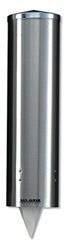 San Jamar C3450 Stainless Steel Large Pull Type Water Cup Dispenser, Fits 8oz to 12oz Cone and 12oz to 24oz Flat Cup Size, 3-1/4" to 3-7/8" Rim, 16" Tube Length