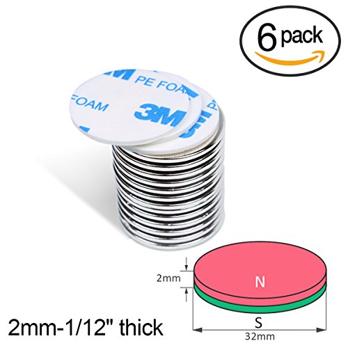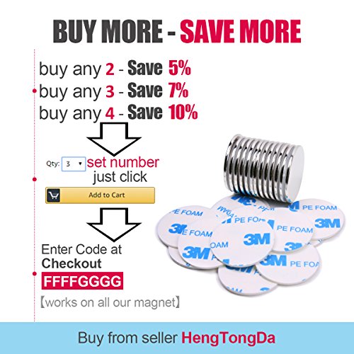 FEYG Neodymium Disc Magnets, 10Pcs Super Strong Rare Earth Magnets with 12Pcs Adhesive Backing, 1.26”D X 0.08”H for DIY Crafts, Fridge, Scientific Use