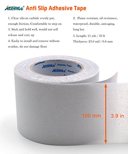 Anti Slip Adhesive Tape, Atemto Non Skid Abrasive Safety Tape 4inch 33ft Traction Heavy Duty Industry Grade Anti-Slip Anti-Skid Tape Grit Tape for Stairs Porch Bathroom Kids The Old (10cm, White)