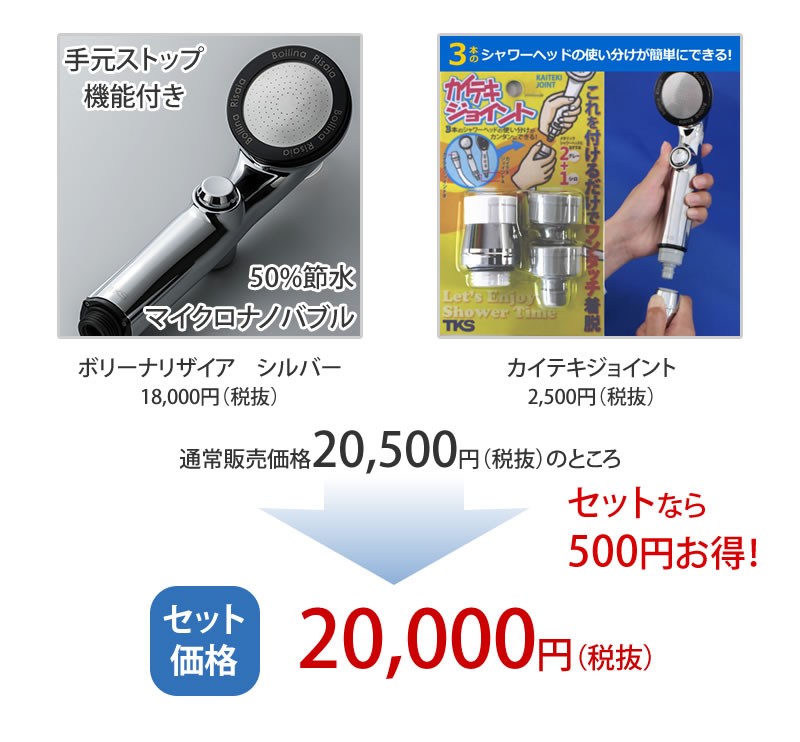 マイクロナノバブルシャワーヘッド ボリーナリザイア シルバー TK-7150-SLとカイテキジョイント TK-2011のセット