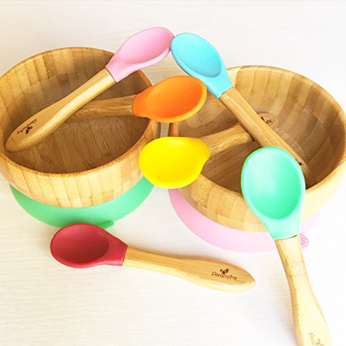 Let's face it, sometimes feeding a child can be a messy job. The last thing a parent wants is a spill and mess to clean up. Baby product brand Avanchy is proud to announce the launch of their solution to this problem, the Avanchy baby & toddler bamboo stay put suction bowls. Safe, attractive and fun, the suction plate can help make meal time a little less messy. The Avanchy bamboo stay put suction divided plate combines foolproof functionality with the highest quality natural materials for your stylish, healthy home. Paired with the FDA approved food grade silicone in 5 bright, cheery colors, this suction serving divided plate makes the chore of feeding baby fun! the removable suction rubber piece easily attaches to the bottom of the serving plate and latches onto the tabletop with a gentle touch. Unlike other baby food dishware, the suction plate grips the table and won't be knocked around or flipped by little hands. The small vacuum relief lever is childproof, especially when aligned on the backside of the bowl, away from the child. With a gentle pull, adults can release the serving plate suction like magic! the drop proof, hot proof bamboo baby dishes cannot be used in the microwave or dishwasher. Choose a healthier option for your home and liven up serving time with cheery silicone colors that accentuate the pure, organic beauty of Avanchy quality craftsmanship and natural bamboo wood.Feature