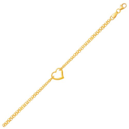 -. Title : 14K Yellow Gold Double Rolo Chain Anklet with an Open Heart Station