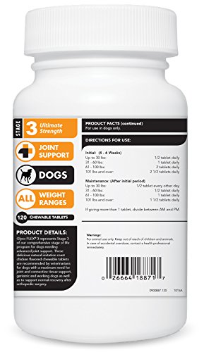 -. Feature : The GlycoFlex Joint support stages system has been trusted and recommended by veterinarians for over 30 years / GlycoFlex is Clinically Proven to increase hind leg strength by up to 41% in just 4 weeks / GlycoFlex Tablets provide a great value for multi pet households - each tablet includes the same joint health nutrient levels as two GlycoFlex soft chews / GlycoFlex tablets are easy to digest and absorb: great for pets that may find chews too dense or that have easily upset stomachs. Our tablets are naturally flavored with chicken for better compliance / This formula Includes glucosamine, DMG, Perna canaliculus and MSM, proven ingredients that help build cartilage, cushion joints and manage inflammation