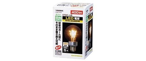 | 仕様 | 口金:E26 光源色:電球色相当 色温度:2700K カラー:クリア 全光束:400lm 消費電力:5W 定格電圧:100V 定格入力電流:0.082A 設計寿命:約40000時間 取扱説明書付 |
