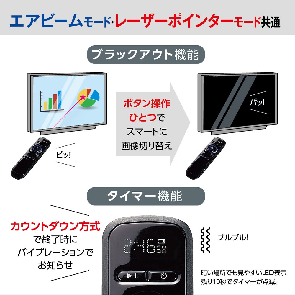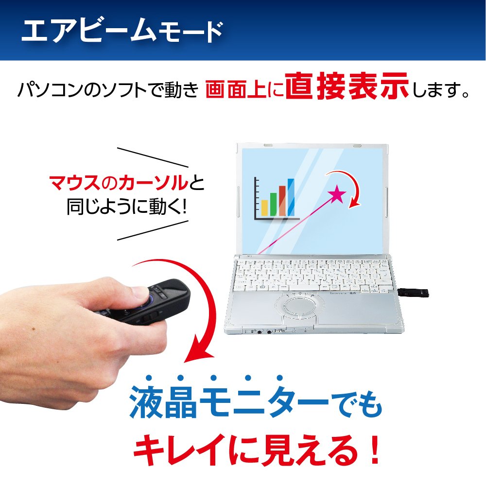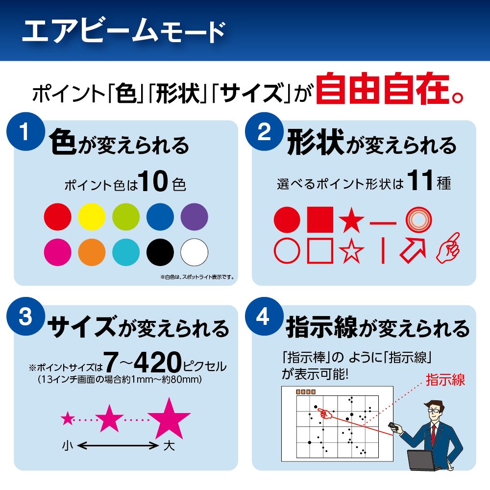● It is a presentation pointer that combines the features of "Air beam" and "Laser pointer".