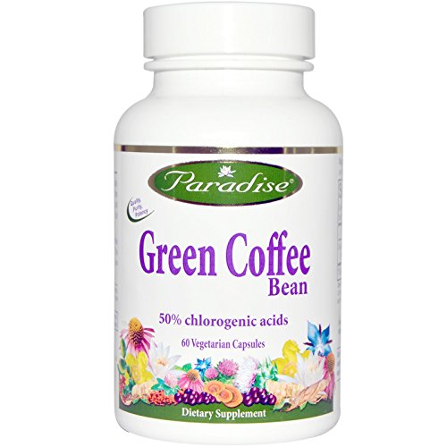 Binding : Misc. Product Description Quality, Purity, Potency 50% Chlorogenic Acids Dietary Supplement Enhancing Nature's Miracles Since 1994 Our Green Coffee Bean extract is up to 20 times the potency of the original bean providing a truly potent holistic full spectrum of active and synergistic constituents in the balanced ratio nature intended. Made The Way Nature Intended! Paradise Green Coffee Bean extract is of the highest quality nature has to offer. Using a 100% natural extraction method the true essence of the whole herb is captured, therefore retaining all of its active and synergistic constituents in a truly potent full spectrum form the way nature intended. Our Green Coffee Bean is derived from unroasted, raw coffee beans and naturally contains less than 2 percent caffeine. The green coffee bean is rich in Chlorogenic acids, which are naturally occurring polyphenol antioxidants. 0