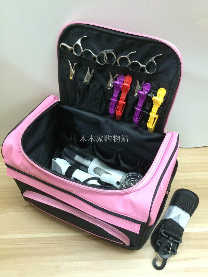 功能:外出学习时可收纳必备工具、美容跟妆、美甲、影楼外景等 拥有超大空间容量,可放吹风 夹板 卷板 旦刷 卷棒 梳子 喷壶 剪刀 夹子等等