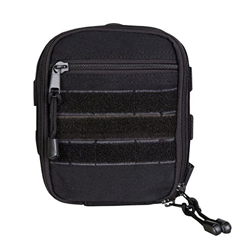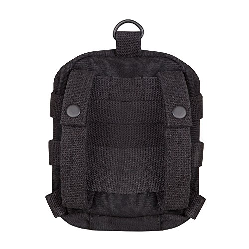 -. Feature : Main compartment with flap snap closure / Back straps for modular attachment / Shoulder strap and D ring for carabineer / Black cotton canvas construction / Dimensions: 6W x 2D x 7.5H in.
