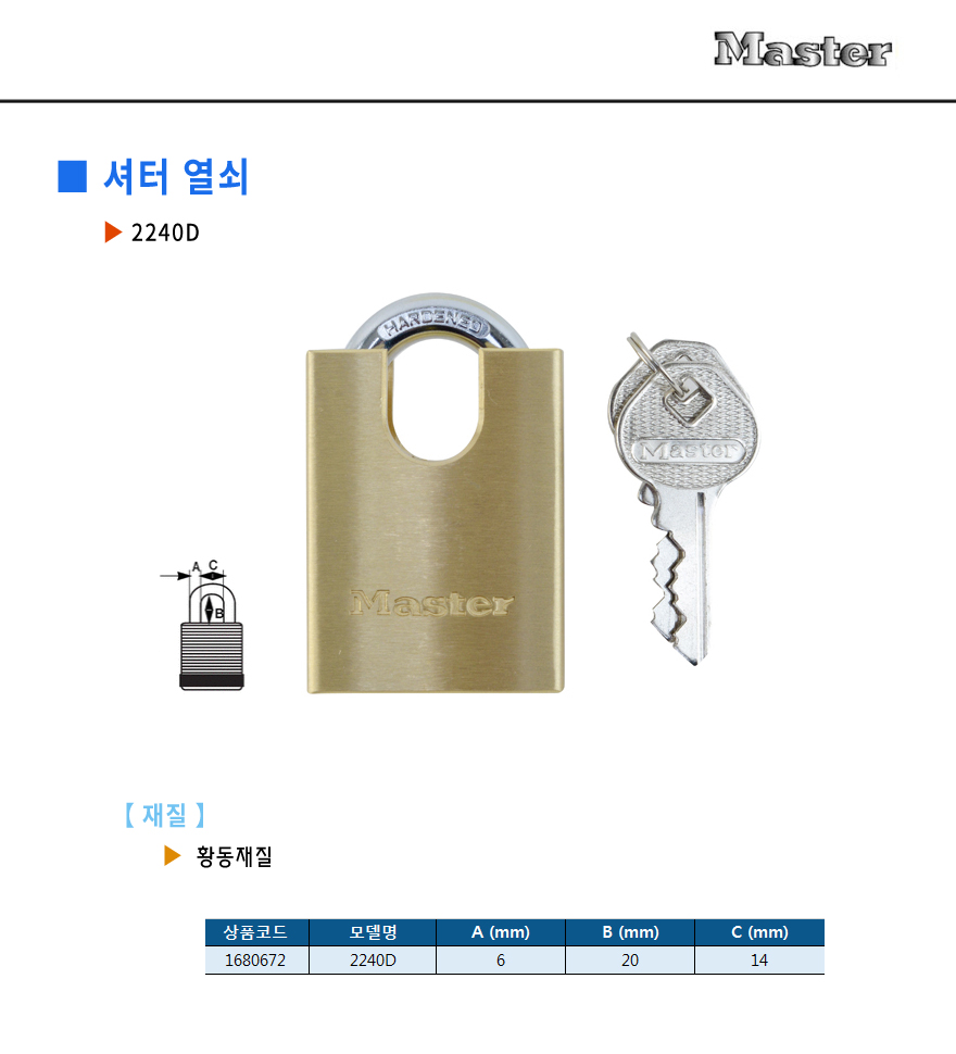 Shutter Key 2240D 6mm Lock Padlock Master-1680672