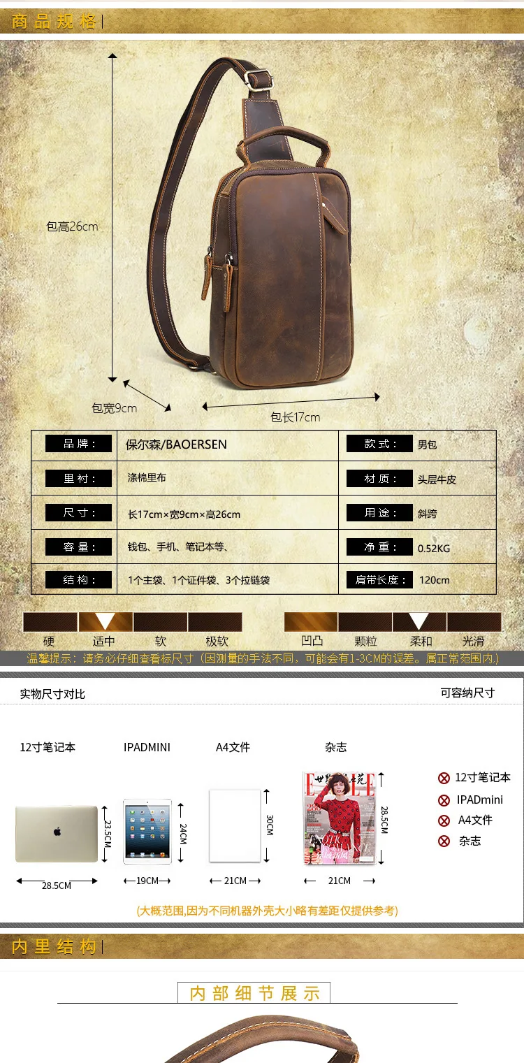 Materials:Genuine leather(Crazy Horse First Layer Cowhide)