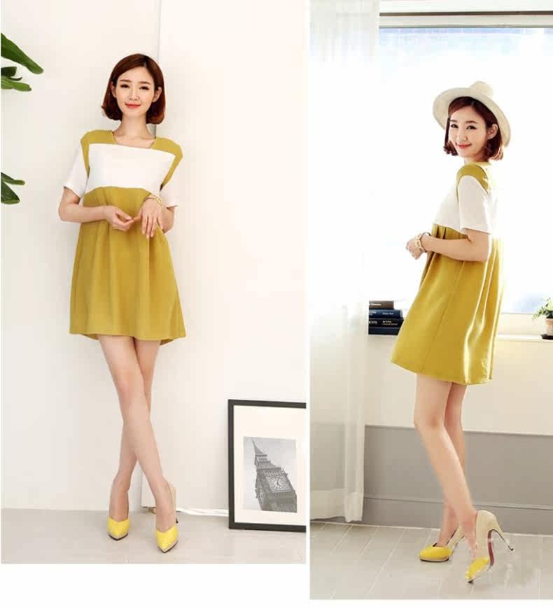 孕妇装夏季新款雪纺韩版显瘦孕妇裙大码宽松中长款短袖孕妇连衣裙