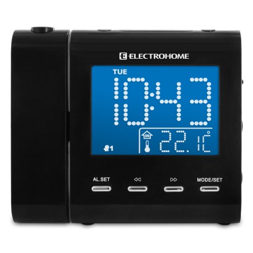 - Title : Electrohome EAAC600 AM/FM Projection Clock Radio with Dual Alarm, Auto Time Set/Restore, Temperature Display, and Battery Backup (Bonus AUX Cable for Connecting MP3 Player Included)