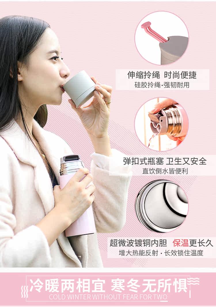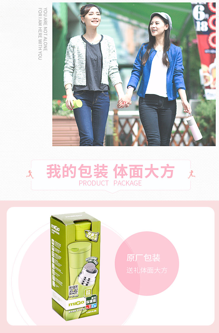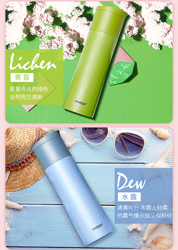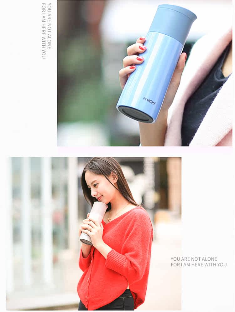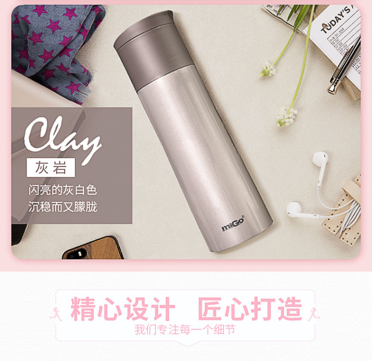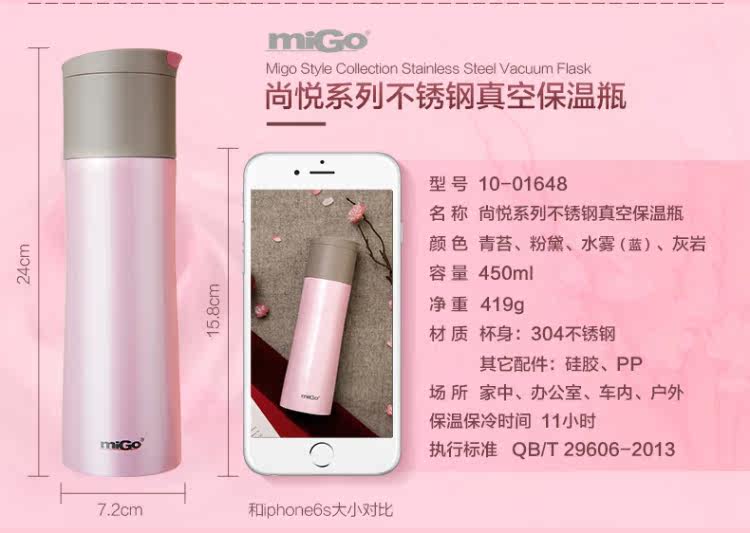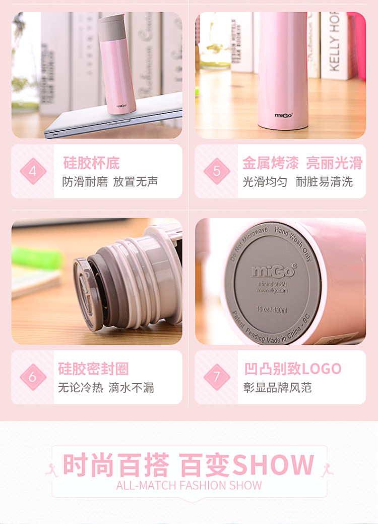 MIGO不锈钢保温杯0.45L 男女士高档车载弹扣水杯便携创意保温瓶
