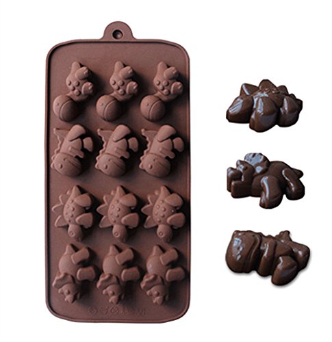 Sunling Non-Stick Heat-Resistant Multipurposes Silicone Baking Molds 12 Dinosaurs Cavities For Kids Homemade DIY Fun