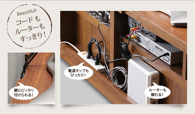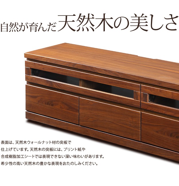 商品について:ウォールナットのテレビ台です。扉の開閉はソフトダウンステーを使用しているのでゆっくり開きます。引出しにはフルスライドレールが付いて開閉らくらく。背面にはごちゃごちゃになりがちなタップなどの収納スペースでスッキリ収納!ウォールナットシリーズでトータルコーディネイトができます☆