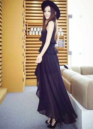 ワンピース ロング丈 パーティードレス ペプラム風 フィッシュテール ブラック シースルー 透け感 上品 お呼ばれ drgz2695