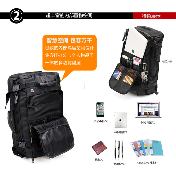 1. Large number [Dimensions: height 62 * 35 * thick 22CM width] feature-rich large capacity! Weight of 1.8kg, suitable for long distance travel use. Because it is large, be sure to purchase with caution this version!