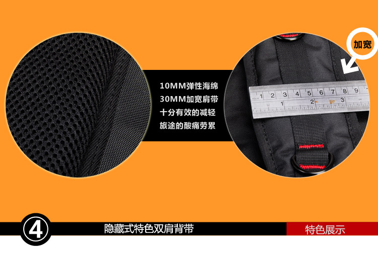 2. Multifunctional version of the play dates with red reinforcement! The back has a wealth of breathable mesh and thick sponge, for carrying heavy items, have more pockets. Function is more complex, heavier!