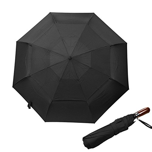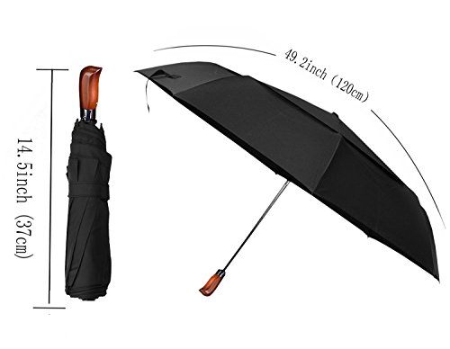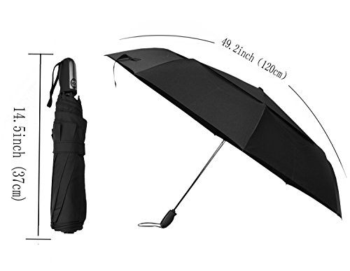 -. Brand : RUNBOX -. Department : mens -. Feature : ★DOUBLE CANOPY --- The double-layer canopy made of high quality polyester material,with vents can perfectly keep away strong wind and heavy rain.provides additional protection from torrential downpours and the vented design helps prevent it turning inside out. Anyone using this won't care if it's raining. / ★EXTRE LARGE --- This umbrella opens to a large diameter size 49 in (125 cm) canopy, its large enough to keep both you and a companion dry,giving you the best protection during a storm. Then folds into a compact 14.5 in (37 cm) long when folded and can easily fit in your bag.This brolly also supplied with a 2-3 ply zipped case can be stored after use eg during a day in the office without soaking the contents of a bag or briefcase. / ★AUTOMATIC --- The automatic open and close button gives you rain and wind resistance protection with one push of a button - a press on the button shoots it up and it locks into position ready for use, pressing on the button again brings it folds down. The last step of re-engaging the stem has to be completed manually - a quick push to lock it back into position and then it's ready for use again. / ★WIND/UV PROOF --- High quality aluminum alloy central rob with its stronger construction, and flexible fiberglass ribs enhance its windproof effect, prevent it from flipping inside out.This umbrella has an added bonus is that is blocks UV, so can be used to instant relief from UV rays with our large canopy when you're out in the sun day. / ★NON-SLIP HANDLE --- During a storm it's hard to keep your grip on a wet plastic handle. The rubberized handle provides a firm grip without fear of slippage in wet,whether for stormy spring weather or mid-summer showers. can perfectly keep away strong wind and heavy rain. -. Model : NRTB002U -. PackageQuantity : 1 -. ProductGroup : Apparel -. ProductTypeName : LAGE -. Size : Extra Large -. Title : Runbox Auto Open/Close Umbrella -- Extra Large Vented Double Canopy Windproof Classic Black Compact Travel Umbrella for men and women