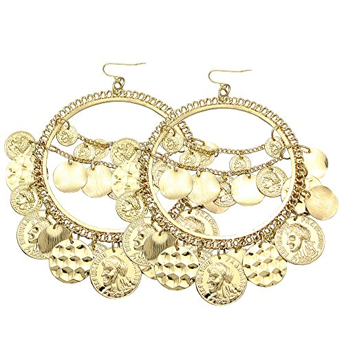 -. Title : 【クークーファッション】Q&Q Fashion 1ペア ヴィンテージ レディース アクセサリー トライバル ビッグ 大きい ドロップ 珍しい コイン チャーム フープ ベリー ダンス チェーン ロング 揺れる スタッド ピアス イヤリング