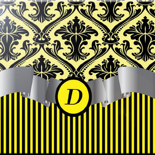 Rikki Knight RK-8intilec-2076 8" X 8" Letter "D" Yellow Damask Stripes Monogrammed Design Ceramic Art Tile