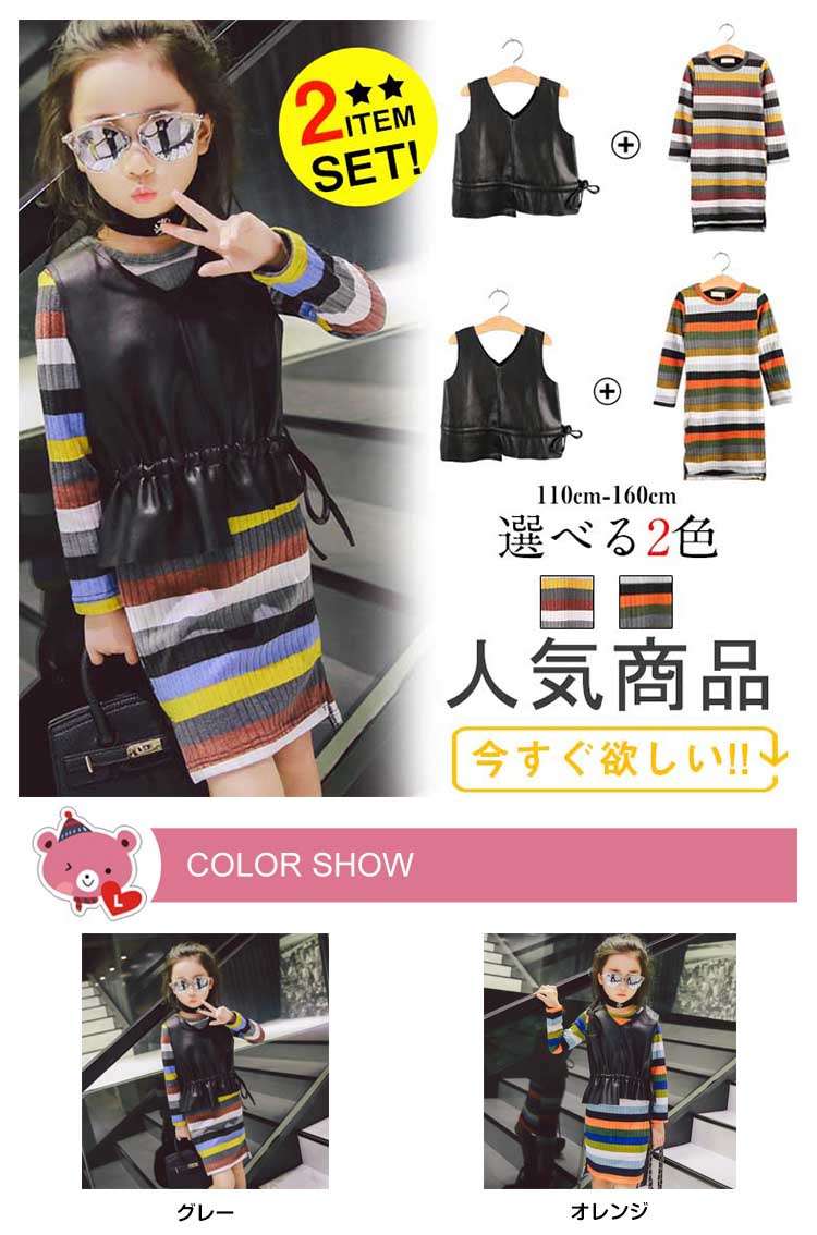 110 スカート着丈60.5-64 バスト58 袖丈36 肩幅23 タンクトップ着丈38 バスト68 肩幅23120 スカート着丈65.5-68.5 バスト60 袖丈39 肩幅24 タンクトップ着丈40.5 バスト72 肩幅25130 スカート着丈69-73 バスト64 袖丈42 肩幅26 タンクトップ着丈42.5 バスト76 肩幅27140 スカート着丈76-79 バスト66 袖丈45 肩幅29 タンクトップ着丈46 バスト80 肩幅28150 スカート着丈78-83 バスト70 袖丈50 肩幅30 タンクトップ着丈48 バスト84 肩幅30160 スカート着丈85-89 バスト74 袖丈52 肩幅30 タンクトップ着丈50 バスト90 肩幅32単位:cm※上記サイズは平置き実寸になります。サイズ表の実寸法は商品によって1-3cm程度の誤差がある場合がございます。