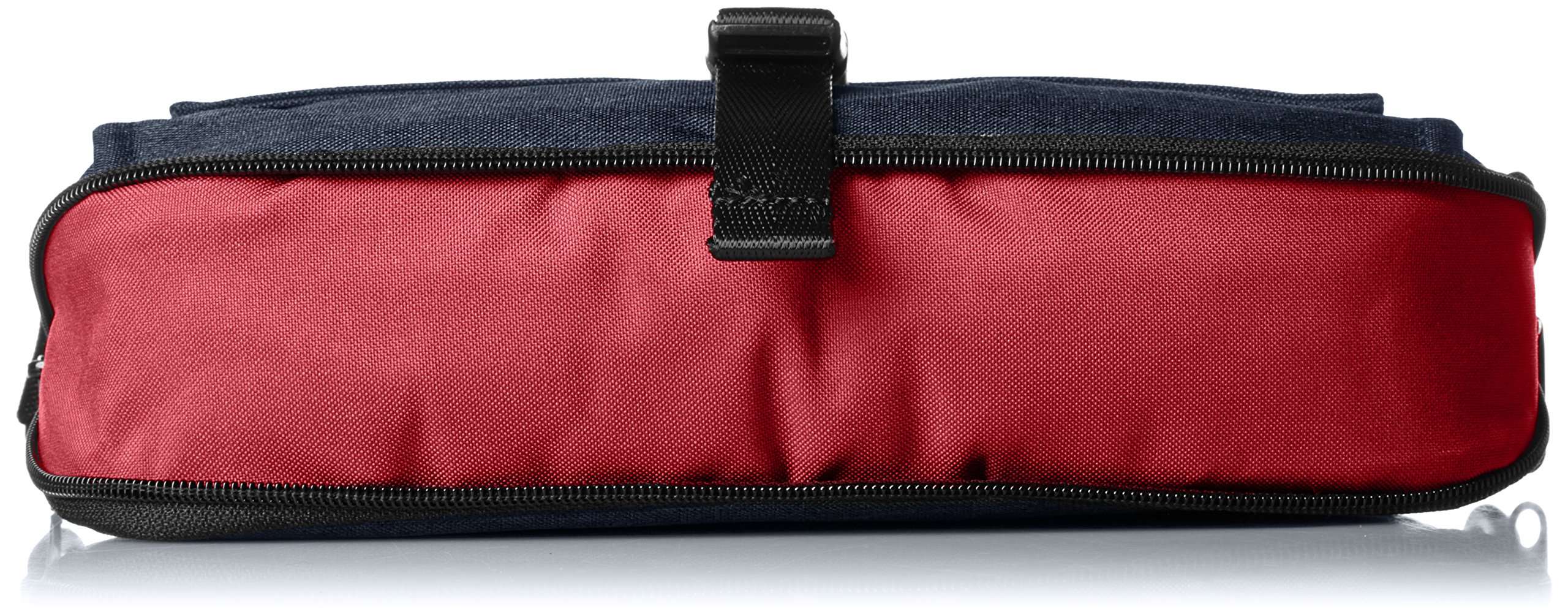 A multi-shoulder bag is a member of a series using a high density heat-resistant polyester fabric.