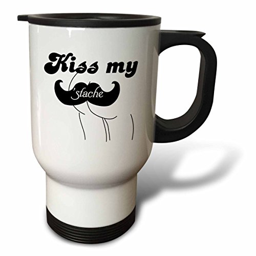 3dRose tm_76619_1 Funny Kiss My Stache Mustache Humor Black and White Moustache Fun Wordplay Pun Naughty Joke Travel Mug, 14-Ounce, Stainless Steel