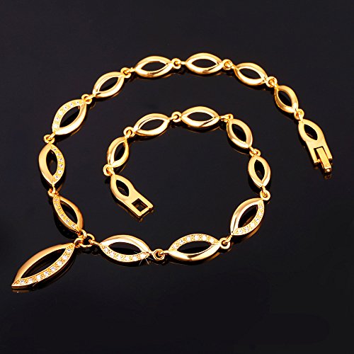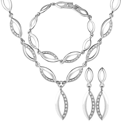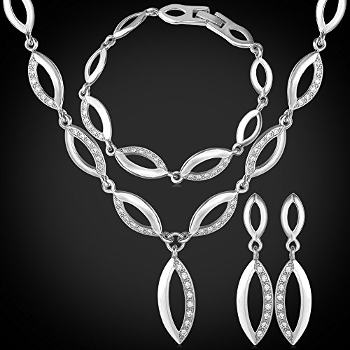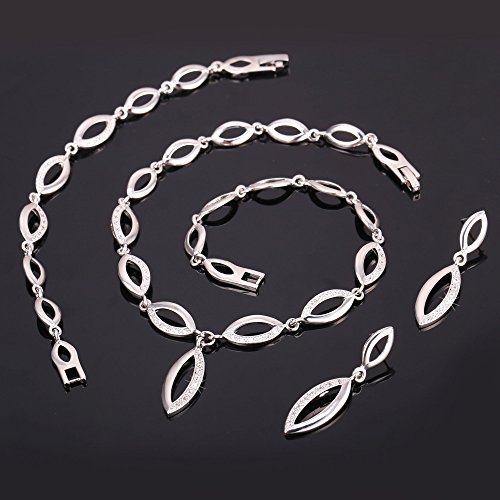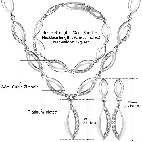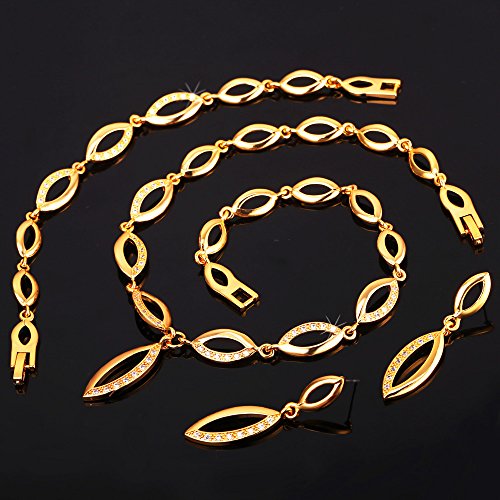 -. Title : U7 Jewelry Cubic Zirconia 18K Gold Plated Willow Leaf Chain Necklace Bracelet Earrings Set