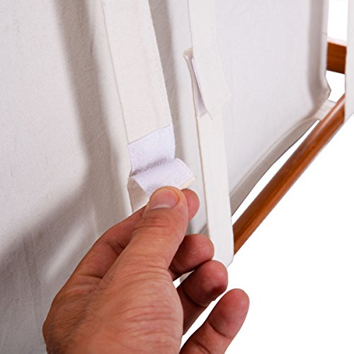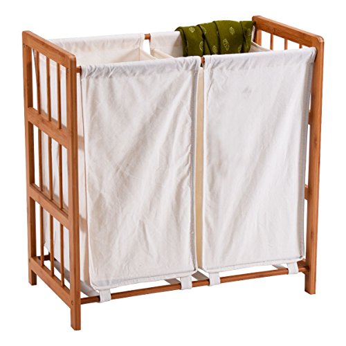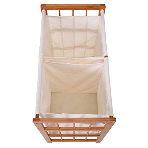 -. Feature : 2 bag compartments to separate different laundry items / The loading capacity is 22LBS. / Material: Bamboo with varnish + canvas / Frame Dimensions: 23"x13"x24"(LXWXH) Canvas Bag Dimensions: 12"x10"x18"(LXWXH) / Shipping form Warehouse in USA