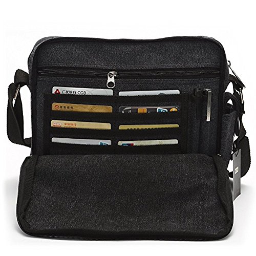 -. Feature : 1.MATERIAL : The bag is made of high density cotton canvas. It's a very durable shoulder bag, fits for outdoor, sports, travel and work. / 2.SIZE : Approx 11.5"L x 4"W x 9.6"H . / 3.STYLISAH & DURABLE:Soft canvas, shoulder strap is wide and adjustable,convenient and comfortable Chic & Stylish design looks so Cool and amazing.It is light but durable. / 4.INTENDED USES:There are 25 pockets.Multifunctional pockets. You can take all kinds of your stuff, like iPad, cellphone, tablet, wallet, books, umbrella, etc. / 5.100% MONEY BACK GUARANTEE - If you are not 100% satisfied with our product, we offer a 30-day money back guarantee and life time replacement for defective items, so what are you waiting for!