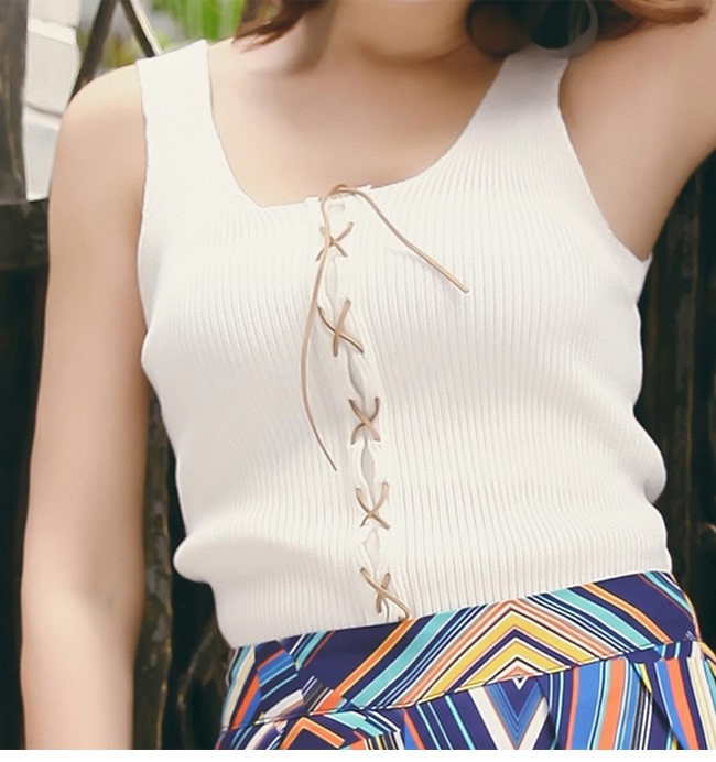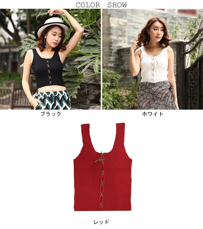 タンクトップ ニット レディース スリム ヘソ出し トップス ノースリーブ 女性用 ニットタンクトップ タイト 薄手 夏物レディース用のタンクトップが登場タイトめのシルエットにヘソ出しの丈感でとてもセクシーなボディーラインを描き出すオシャレポイントはフロントの紐付きデザインとフェイクレイヤード効果リブ仕様のニット生地でとても伸縮性に優れて、より幅広い体型を対応できるクラシックな色チョイスで着まわしも効く一枚カラー:ブラック ホワイト レッド素材 ポリエステルサイズ(cm) FF 参考身長≦168cm 参考体重≦55kgご注意:※サイズは平置きサイズです。素人採寸ですので、若干の誤差がございます、ご了承ください。