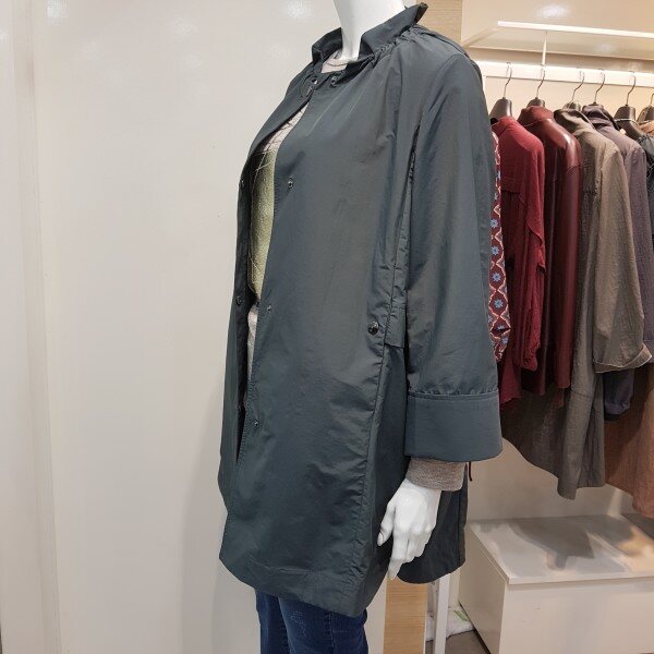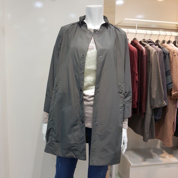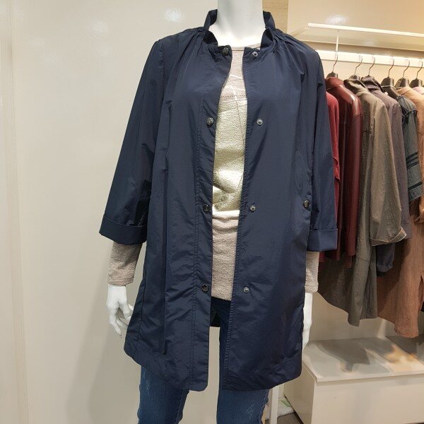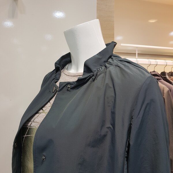 카라부분 셔링포인트를 주어 귀엽고 A라인 스타일로 여성스러운 디자인입니다.