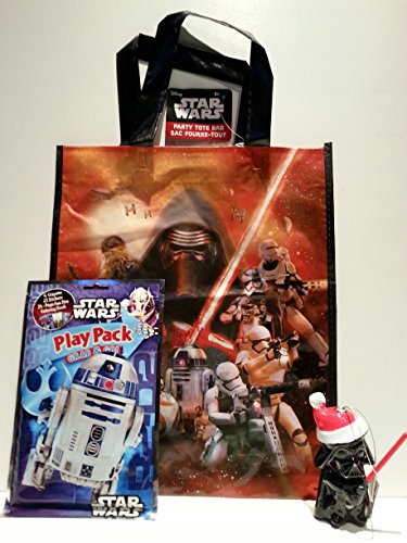 This gift bundle includes a great Hallmark Darth Vader Christmas Ornament for your tree. All the great characters on the Star Wars tote bag that can be used for most anything. The R2D2 Play Pack is a great set to includes crayons and drawings