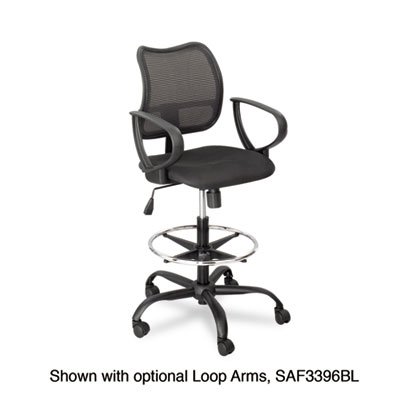 -. Binding : Office Product -. Brand : Safco -. Color : Black -. Feature : Height-adjustable chair with mesh back, five-star base with casters. Supports up to 250 lbs. / Perfect for a photo studio or drawing conclusions at your drafting table in comfort. / Breathable mesh back design adds all day comfort to mail room or simply spice up your conference room. / Safco® Optional Loop Arm Kit for Mesh Extended Height Chair, sold separately. / Adjustable foot ring for comfort and stability. -. Label : SAFCO PRODUCTS -. Manufacturer : SAFCO PRODUCTS -. MPN : 1-3395BL -. NumberOfItems : 1 -. PackageQuantity : 1 -. PartNumber : 1-3395BL -. ProductGroup : Office Product -. ProductTypeName : OFFICE_PRODUCTS -. Publisher : SAFCO PRODUCTS -. Studio : SAFCO PRODUCTS -. Title : Vue Series Mesh Extended Height Chair, Acrylic Fabric Seat, Black