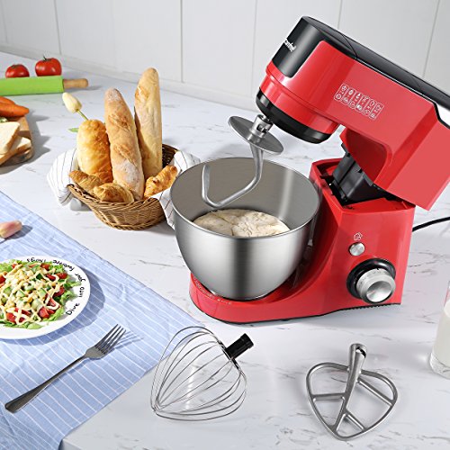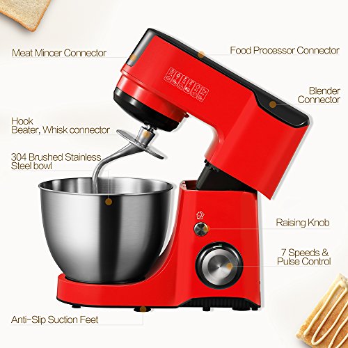 Comfee 7-in-1 Multi Functions Tilt-Head Stand Mixer with 7 Speeds & Pulse and 15 Minutes Timer for Planetary Mixing. 4.75 Qt. Stainless Steel Bowl with Whisk, Hook, Beater ¡