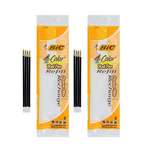 Bic 4-Color Retractable Assorted Ink Ballpoint Pens, Pack of 3 with Bonus Refills