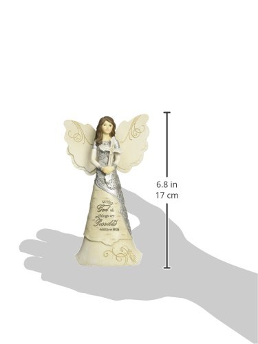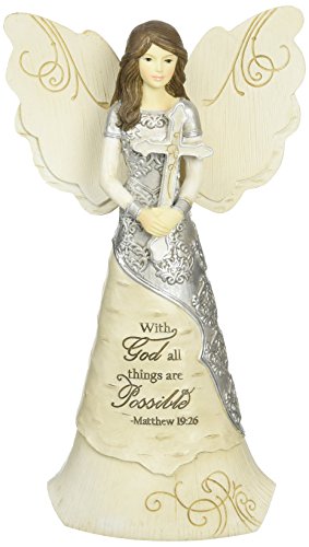 Elements Faith Angel Figurine by Pavilion, 6-1/2-Inch, Holding Cross, Inscription with God All Things Are Possible